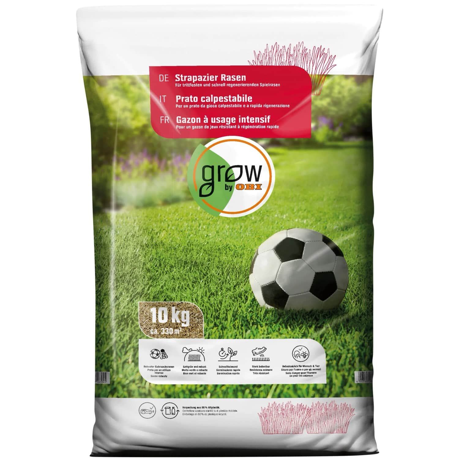 Sie suchen nach einer Rasensaat, die höchsten Ansprüchen an Widerstandsfähigkeit und Optik gerecht wird? OBI Strapazier-Rasen 10 kg ist die ideale Wahl für alle Gartenbesitzer, die einen langlebigen und pflegeleichten Rasen wünschen, der selbst intensiver Nutzung standhält. Egal ob für Familien mit Kindern und Haustieren, für Sport und Spiel im Freien oder für stark beanspruchte Flächen – diese hochwertige Rasenmischung garantiert Ihnen ein dichtes, sattgrünes Ergebnis.
