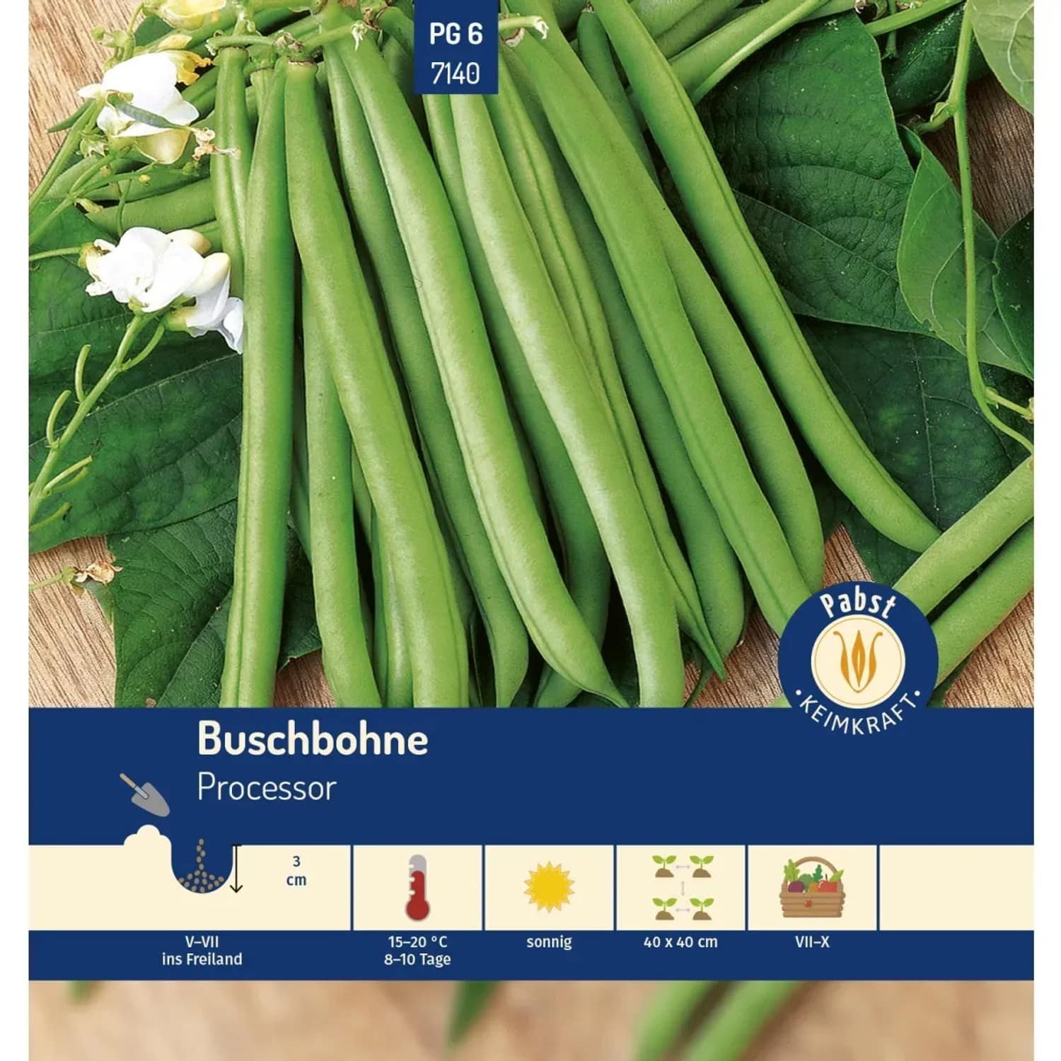 | Sortenname | Pabst Keimkraft Buschbohne Mittelspät & Robust Processor |