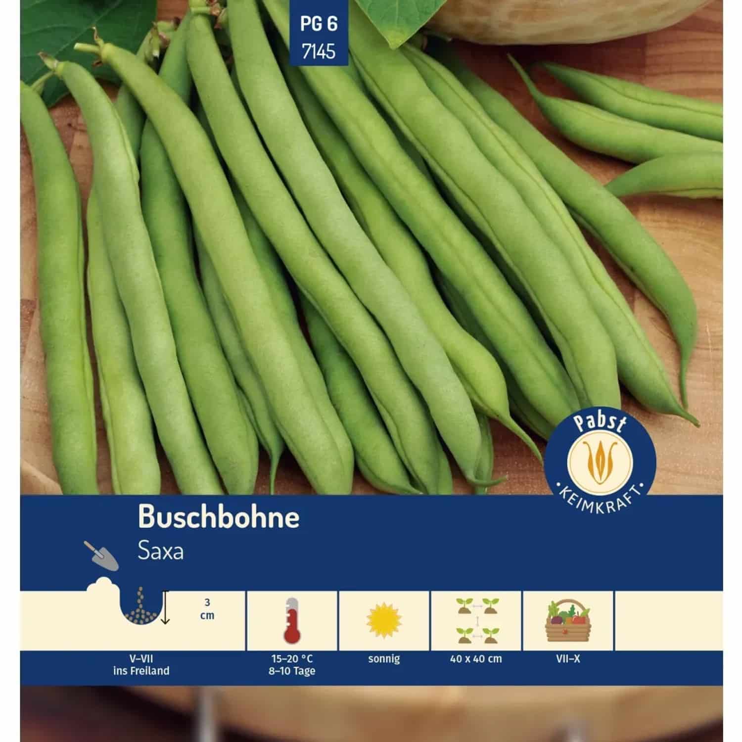 Entdecken Sie die Pabst Keimkraft Buschbohne ‚Saxa‘, die ideale Wahl für Gärtner, die eine frühe und ertragreiche Ernte von zarten, aromatischen grünen Bohnen anstreben. Diese bewährte Sorte zeichnet sich durch ihren besonders schnellen Wuchs und ihre Robustheit aus und ist damit perfekt für den Anbau in Hausgärten und kleineren Beeten geeignet.