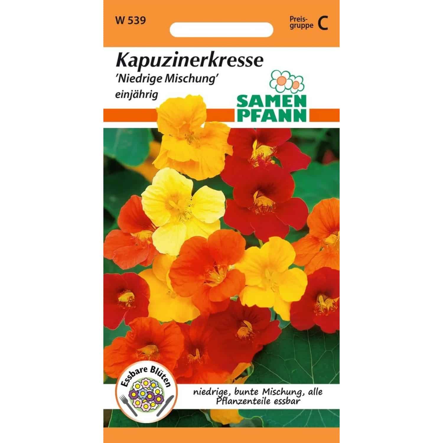 | Sortenmischung | Enthält verschiedene niedrigwachsende Kapuzinerkresse-Sorten |